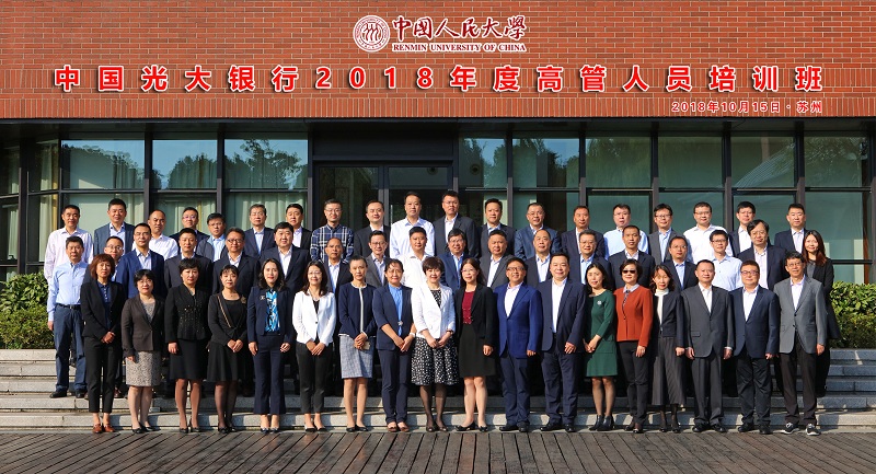 2018年10月15日至10月19日,受中国光大银行委托,日本av中文字幕 举办中国光大银行2018年度高管人员培训班(第二期)。共有56位中国光大银行的学员赴人民大学苏州校区学习。